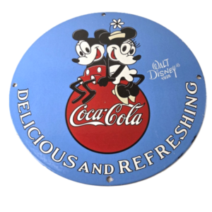 Vintage Coca Cola Sign – Refreshing Soda Mickey Mouse Gas Porcelain Disney Sign