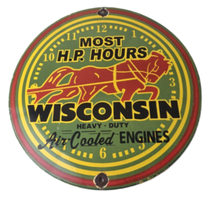 Vintage Wisconsin Engines Sign – Gas Pump Plate Automobiles Porcelain Sign