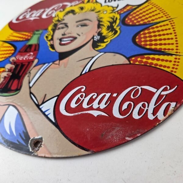 Vintage Coca Cola Porcelain Sign – Gas Pump Service Marilyn Monroe Sign